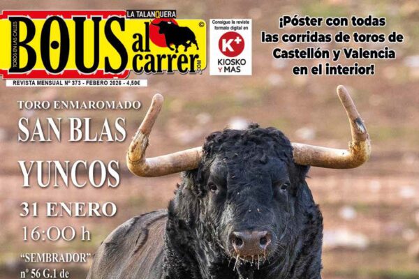 Revista Bous al Carrer Nº 373 Febrero 2026 | Especial San Blas y Yuncos 🐂 ¡Ya está en la calle el número de febrero!Este mes la portada vibra con la fuerza de “Sembrador”, el toro de Samuel Flores que protagonizará el Toro Enmaromado de Yuncos. 🔥 Protagonista: San Blas en Yuncos El 31 de enero... (+)