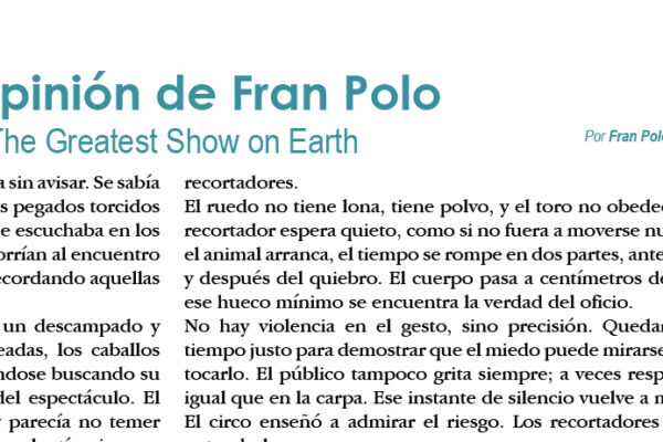 La opinión de Fran Polo. Había un tiempo en que el circo llegaba, llegaba sin avisar. Se sabía por el olor. Luego aparecían aquellos carteles pegados torcidos en las paredes y el sonido de la música que se escuchaba en los ensayos con los primeros rayos de luz. Los niños corrían al encuentro y los... (+)