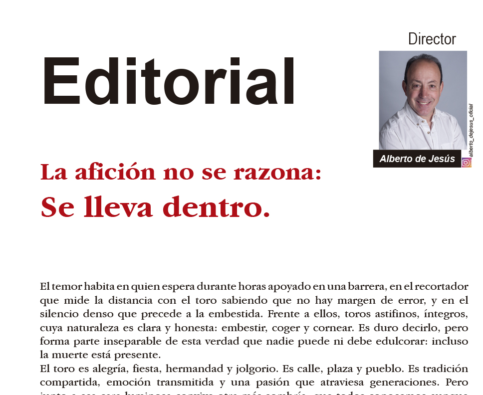 febrero 4, 2026 La afición no se razona: Se lleva dentro. by Editorial revista de febrero nº 373. La afición no se razona: Se lleva dentro. Alberto de Jesús, Noticias, Opinión